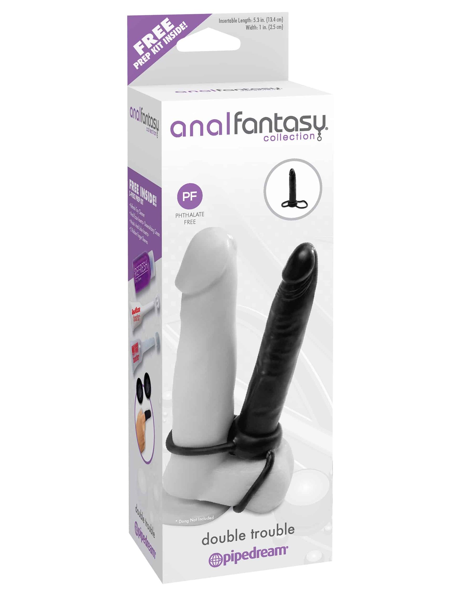 Every Anal Fantasy box features a FREE 5-piece prep kit to help you ease into comfort and clean up afterwards. The kit includes two finger sleeves, Anal Eaze Insertz? Cream, Moist? Anal Lube, and Refresh? Toy Cleaner.