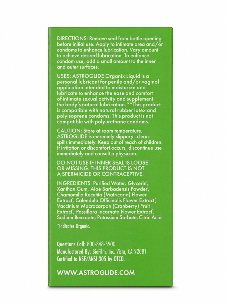 Life’s too short to fake it or deal with vaginal dryness and irritation. And now, you don’t have to with our sensational organic lube. ASTROGLIDE Organix Liquid personal lubricant is a water-based lubricant that is made with certified organic ingredients and is free of parabens, hormones, fragrances, and flavors. If only all orgasms came so naturally.