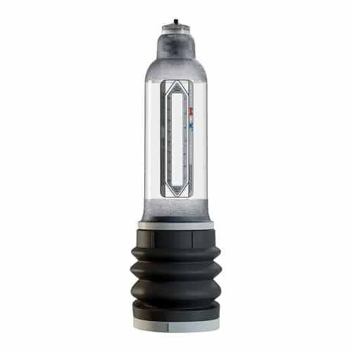 Your Water Penis Pump X30 consists of an extra sturdy polycarbonate cylinder marked off into both metric and imperial increments, a pliable, skin safe synthetic rubber gaiter base and stainless steel spring release valve up top. It’s 29.5cm (11.6 inches) in total, with 8.5cm (3.34 inches) of diameter. The maximum penis length that this pump will accommodate is about 20 cm (7.9inches), and the maximum girth is about 4.6cm (1.8inches) in diameter.