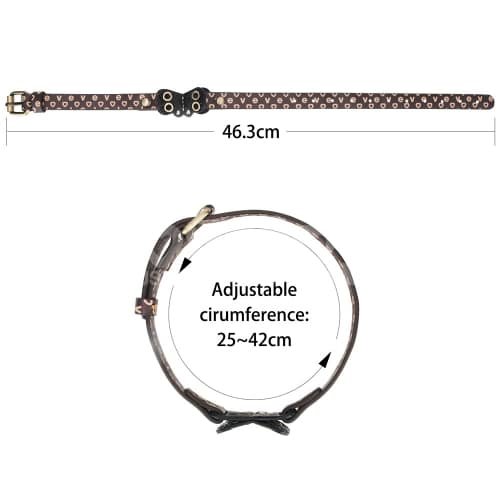 The adjustable brown strap with multiple sizing holes ensures a precise, comfortable fit for necks of all sizes (adjustable circumference: 9.85 inches to 16.55 inches), secured effortlessly with a practical buckle closure. Designed with meticulous attention to detail, its generous 18.2-inch length and refined 0.59-inch width provide both security and comfort without compromising your skin. Perfect for daily wear, this collar combines both style and practicality.