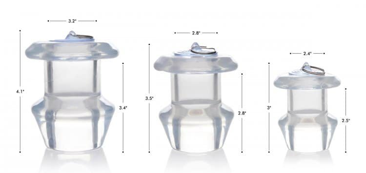 Measurements: Overall length: 3.5, Insertable length: 2.8 inches, Widest insertable diameter: 2.8 inches, Inner diameter: 1.4 inches
