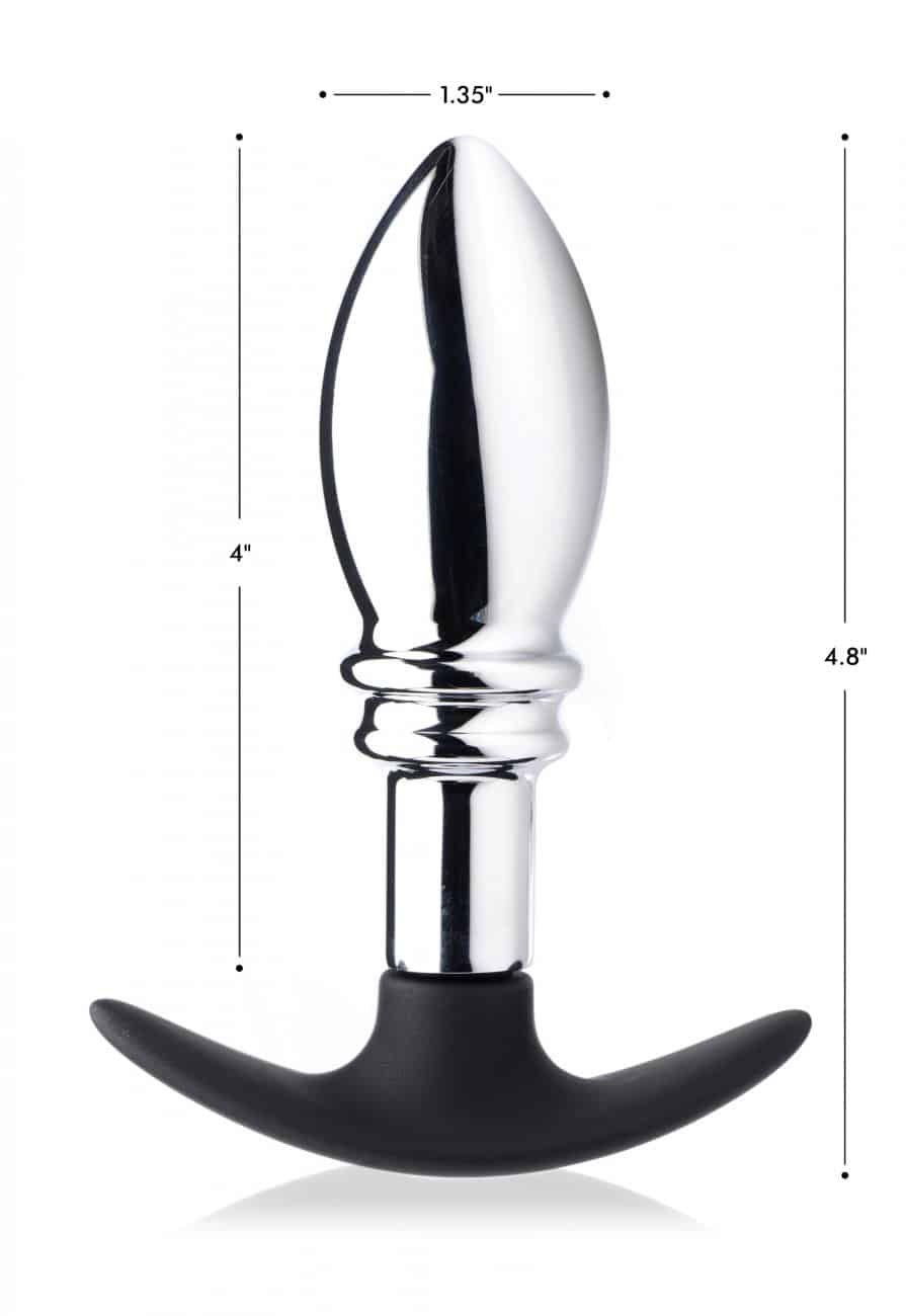 Stuff your ass with a weighted plug that features a seamlessly smooth bulb and two dramatic ridges. The Dark Stopper is a great size for those who are comfortable with anal penetration, sliding in with ease and then massaging in an anal tease. This plug will deliver sensual anal satisfaction during foreplay, masturbation, or even during intercourse. If you think you can handle the weight, wear it out throughout your day! The premium silicone base is shaped to fit comfortably between your cheeks for long-term wear. The sleek metal and soft silicone are both non-porous, phthalate-free, and nickel-free. Clean after use with a mild soap and warm water. Do not use with silicone lubricants.
