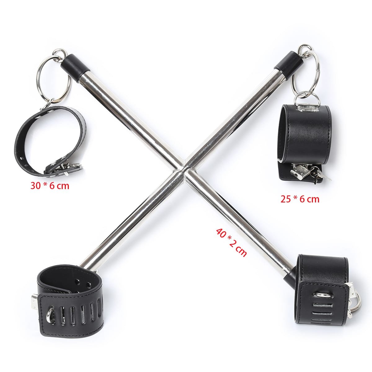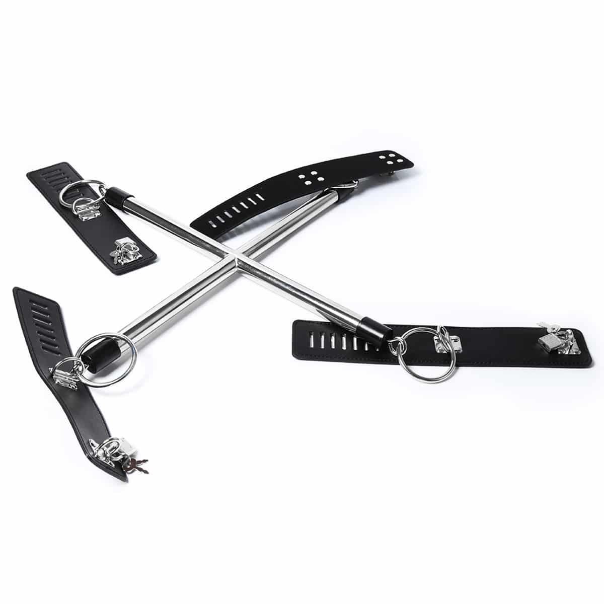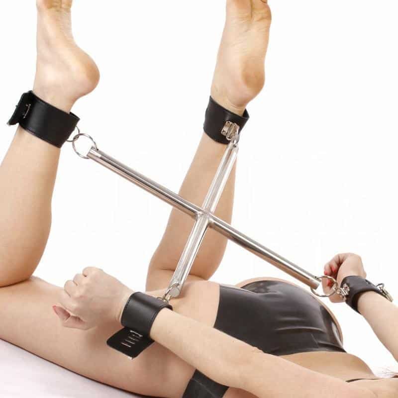 The Hogtie-X is a cross-bar restraint that allows you to put your partner in an immobile position. You can either place it in the front or in the back, however you wish to position them. This is ideal for partners who not only don’t want to deal with any complicated rope tying but also want that visual appeal and durability of steel during their bondage sessions. The restraints are secured directly to the bar for extra security.