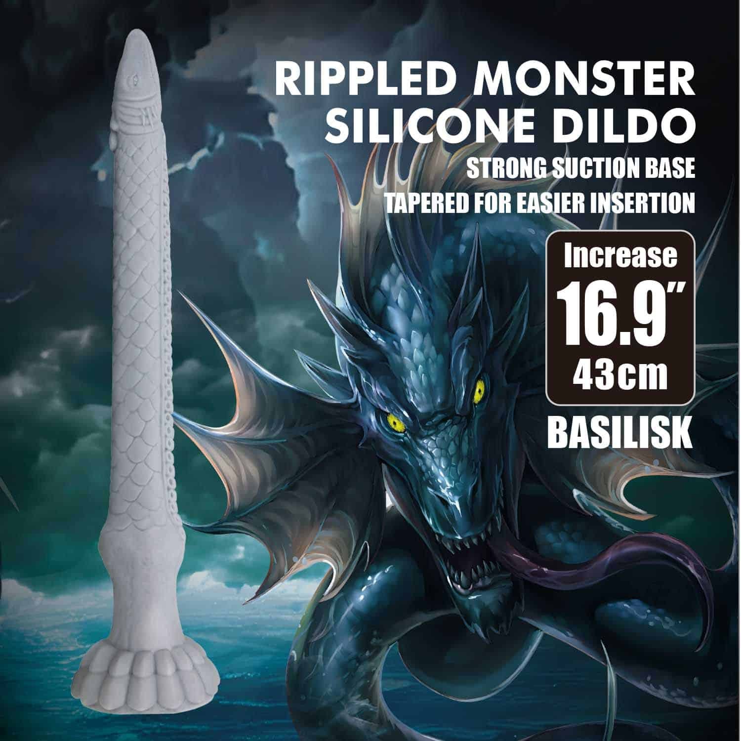 Unleash your wild side with the Rippled Monster Silicone Dildo known as Basilisk, a toy that demands attention with its sheer presence.
