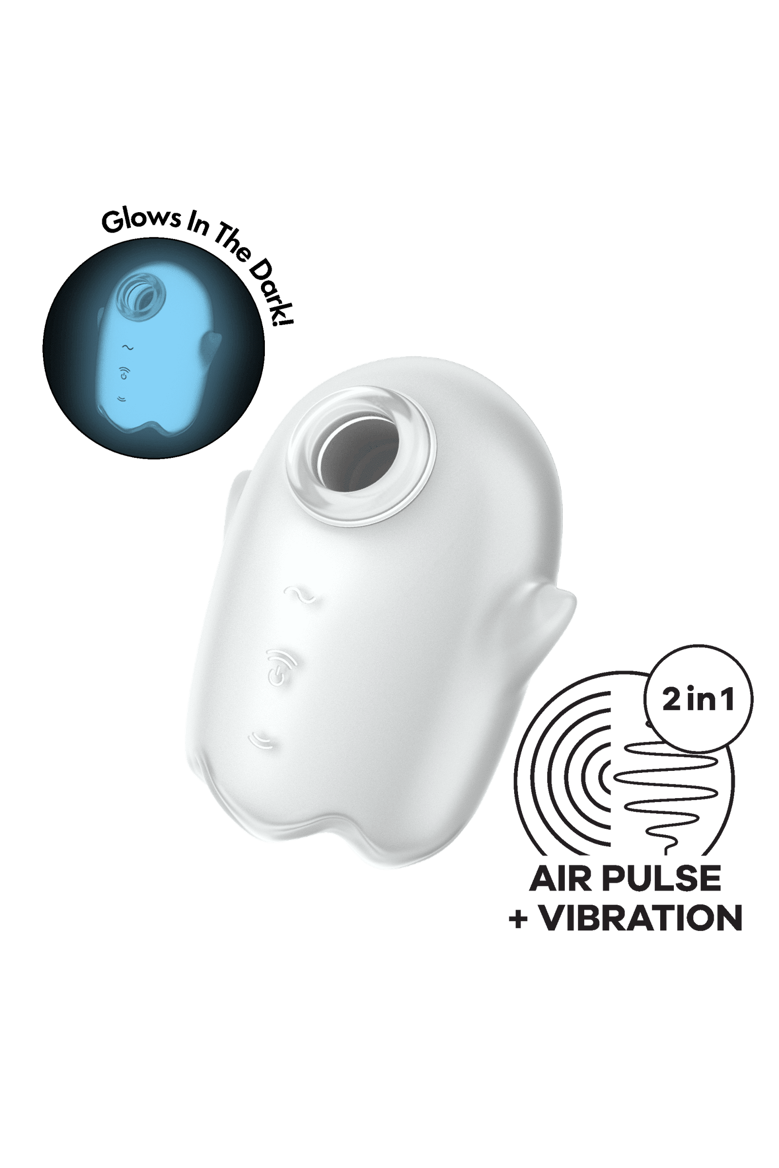 A little love toy for scary good climaxes: The Satisfyer Glowing Ghost is the latest addition to the Satisfyer air pulse vibrator line, giving you goosebumps of pleasure with Satisfyer?s beloved Air Pulse technology and intense vibrations. Stimulates the clitoris using intense pressure waves without direct contact. Made from super-soft, body-friendly, medical-grade silicone that’s smooth to the touch and extremely hygienic. Thanks to its waterproof (IPX7) finish, this toy can be used safely in water and is easy to clean.