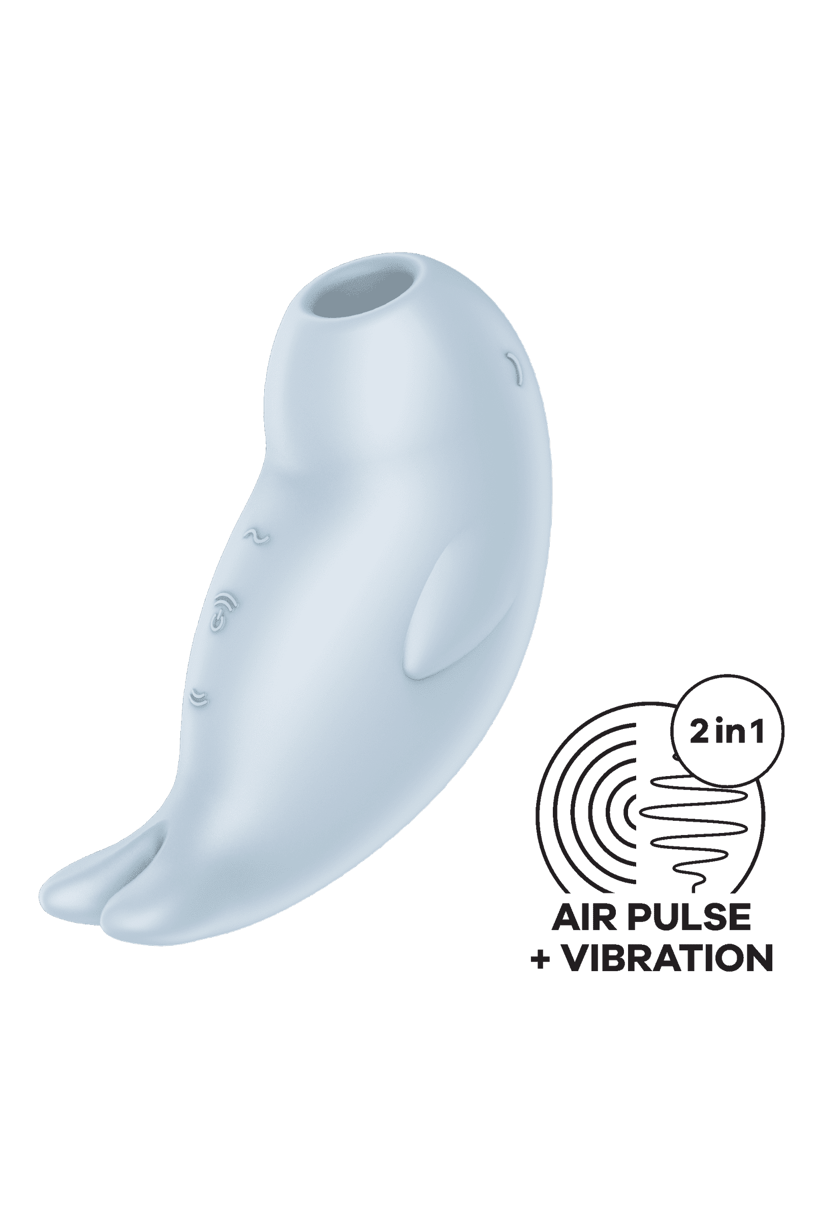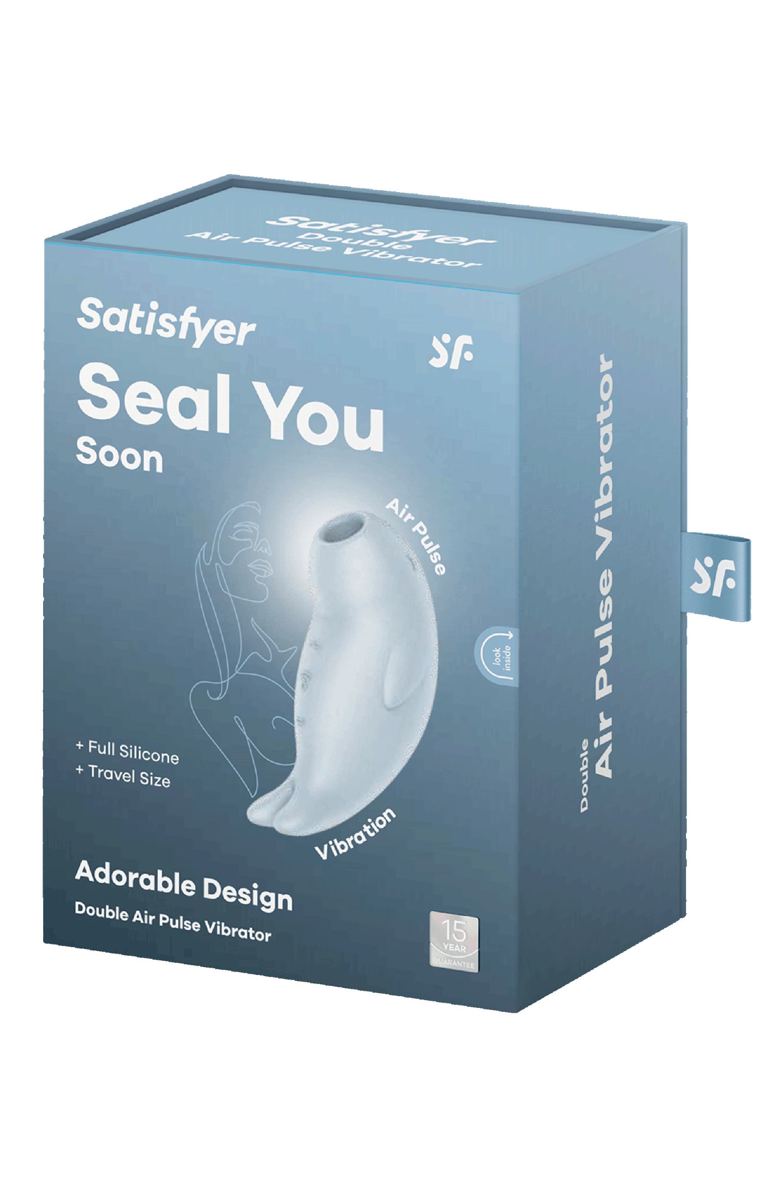 Ride the pressure waves with this lovely marine animal: The Satisfyer Seal You Soon is the latest addition to the Satisfyer Double Air Pulse Vibrator range, featuring the beloved Satisfyer Air Pulse Technology as well as intense vibration for incomparable clitoris stimulation. Place the opening around your clitoris and enjoy the sensation of touch-free pressure waves, choosing from one of 11 air pulse programs. And there?s even more: To intensify this feeling, you can combine the air pulse feature with one of 12 varied vibration programs. Of course, you can also use this vibrator as a classical lay-on vibrator, as both features can be controlled independently. The surface of the Satisfyer Seal You Soon is made of soft, body-safe silicone that gently glides over your body and your hot spots, adding to the pleasure.