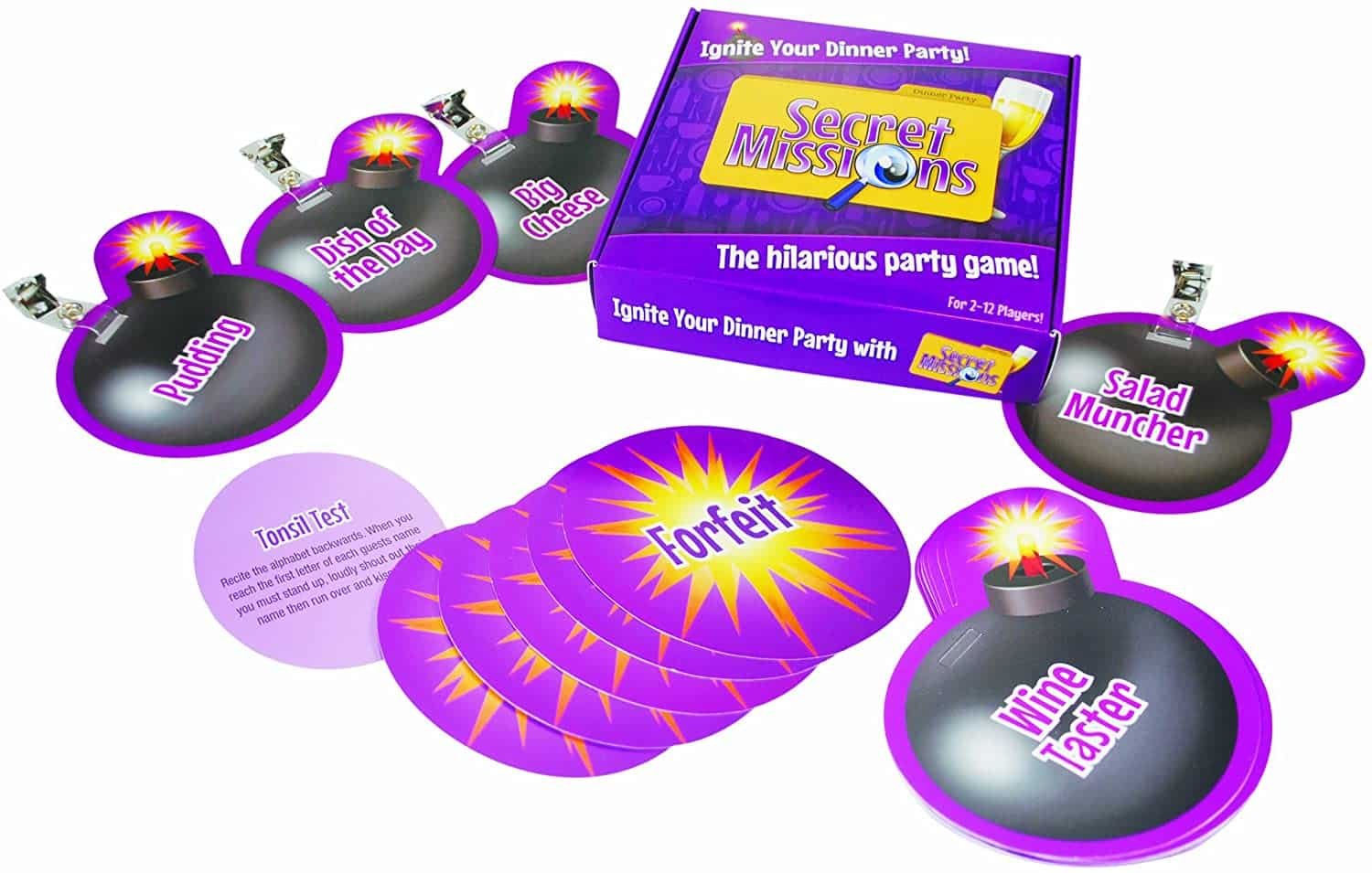 Get your party started with a Bang with Secret Missions – it’s sure to go down a bomb!!As host, choose the most appropriate name tag for each guest from the twelve Party themed badges. On the reverse of each tag is their Secret Mission, known only to them. It may be naughty, it could be cheeky, but it’s sure to be downright hilarious.A great way to break the ice and light the fuse for a wild bash as guests covertly carry out their undercover operations.