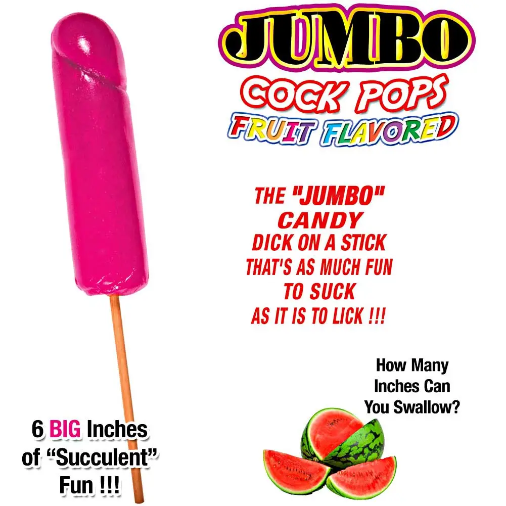 THE “JUMBO” CANDY DICK ON A STICK THAT’S AS MUCH FUN TO SUCK AS IT IS TO LICK !!! 6 BIG Inches of “Succulent” Fun !!! Watermelon Flavor.