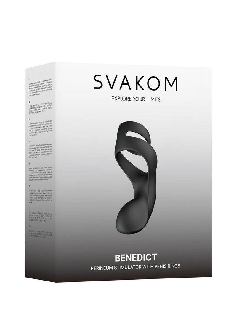 Offering all the benefits of a penis-ring, as well as the stimulation of a perineum massager, Benedict creates an intense and exhiliarating experience. The super stretchy rings provide satisfying restricting regardles of size or shape, whilst the massager rests frimly against the perineum.