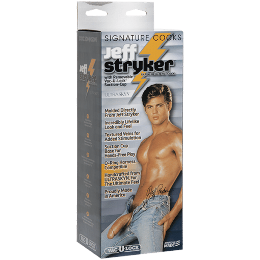Live out your porn star fantasy! Molded directly from Jeff’s hard 10″ cock and plush balls, this ultra realistic cock has a perfectly curved shaft, and is made from ULTRASKYN, the most lifelike material in the world. The balls even jiggle and move when touched. It is made from phthalate-free body-safe material. Comes with included silk pouch for storage. Available in White. Proudly Made in America.